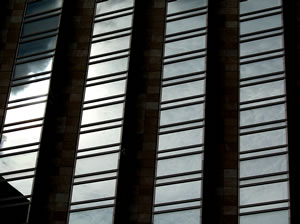 the reflected cloud on the widows of the building...