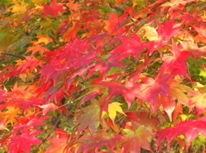 the tapestry of scarlet-tinged leaves...