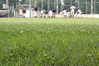 the outfield with full of clovers...